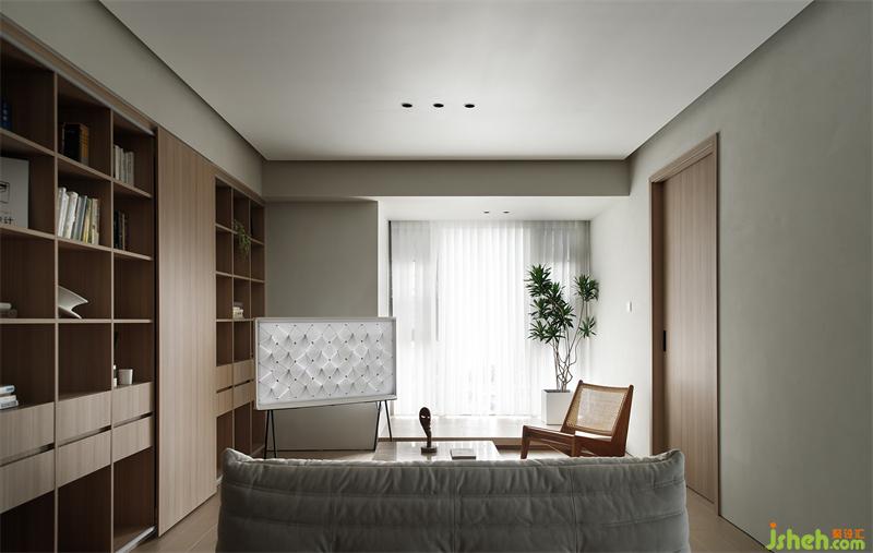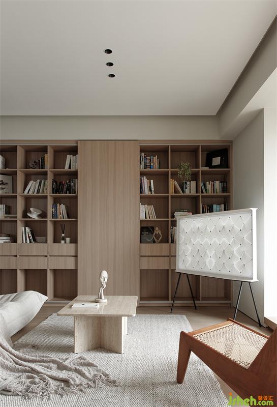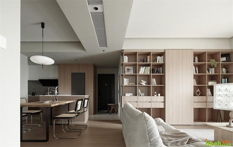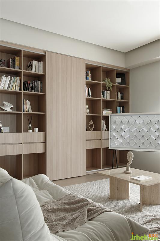 根据屋主的需求,我们从功能和美学的角度审视房屋的每个角落元素,在客厅设置了整面的开放格书柜,既有收纳又有展示的空间,根据喜好放置书籍、艺术摆件等,随时保持家的新鲜感。