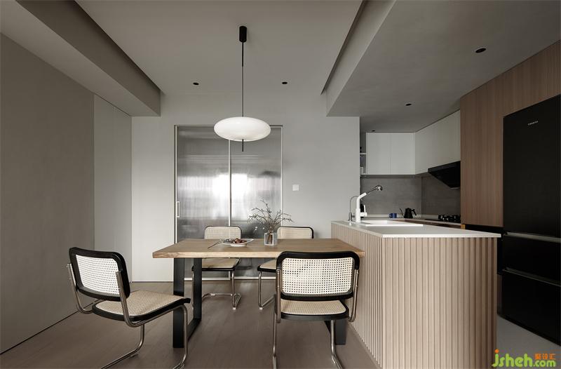 ① 将独立的厨房打通,消除拥挤感,开放式餐厨区带来烹饪方式的多元化,隐藏式家电让空间显得利落统一。