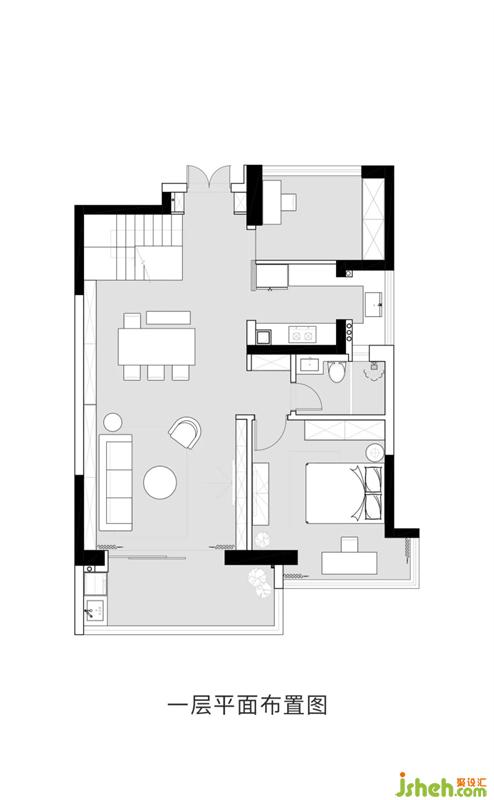 楼梯处改变了原本的朝向,让整体动线变得更加清晰合理。