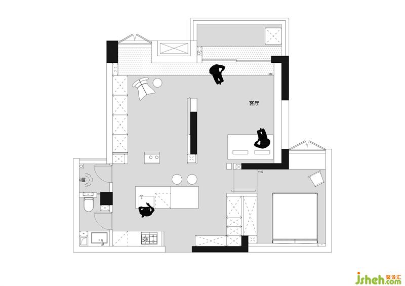 这是一对年轻小夫妻的婚房,原户型是一个传统两房结构,深圳家居设计各个功能区间相对封闭独立,采光结构单一,缺少交互性与趣味性。