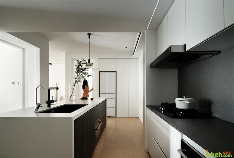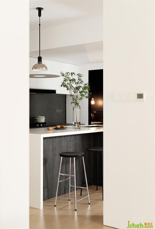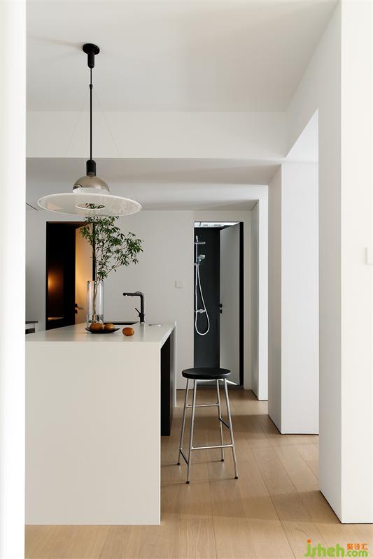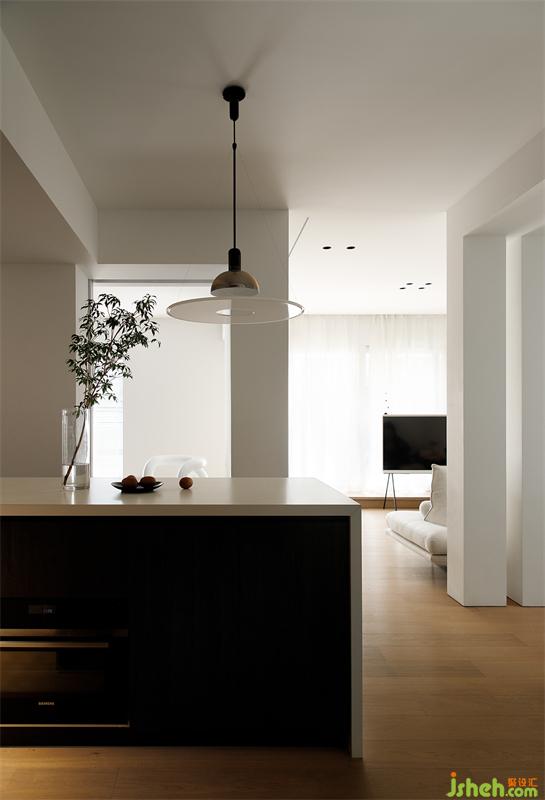 在满足基本功能舒适性的前提下,释放了原封闭厨房和洗手间的区域,打造出超大操作空间的开放式厨房,提升了空间的通透性与拓展性,同时产生既独立又互动的丰富生活场景。