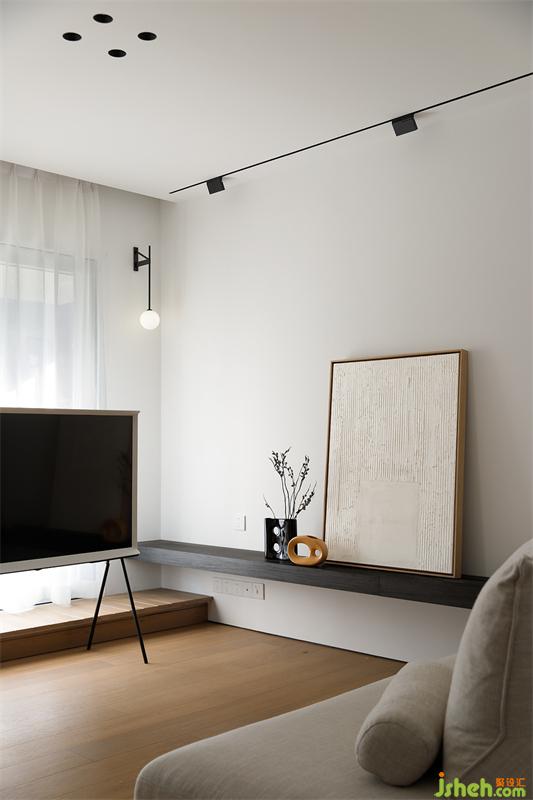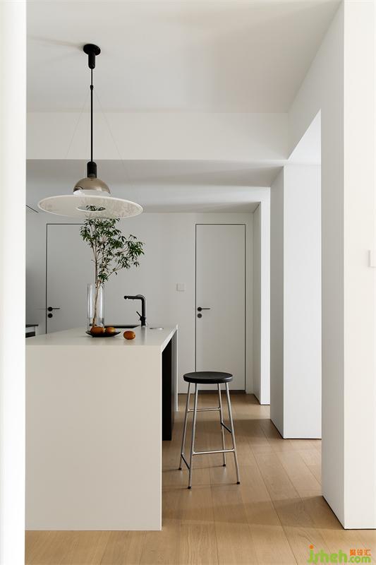 结合屋主实际需求下,我们运用建筑思维,将厨房与卫生间区域优化整合, 利用体块化的结构进行区域间的分隔与联结,地台设计贯通阳台、客厅与多功能间,带来丰富采光的同时,整个公共区域呈现出流动的意趣。