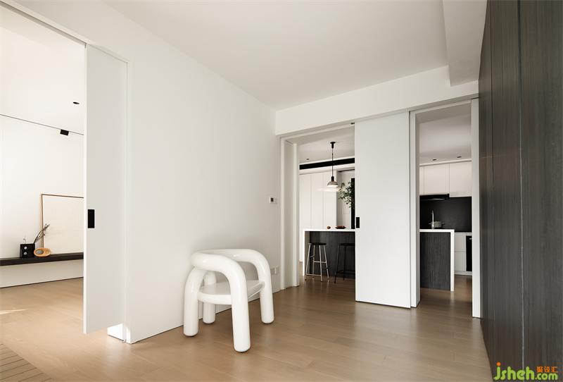 尽量让人与空间、空间与光照、光照与人之间产生关联,是这个小家的精神内核。白、原木色作主调,呈现着内敛优雅的底蕴,又于平淡生活中象征着不会堙灭的热爱与理想。