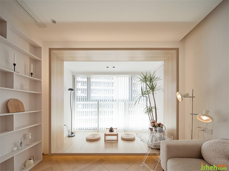 阳台并入客厅,利用地台做出休闲区,6㎡的空间打造出一个健身区兼茶室,同时也扩大了空间视觉感。家装设计平时女主经常在这里健身做瑜伽,大面落地窗的优势,导入了充裕的光线,适宜的绿植点缀,把空间衬托的更鲜活,一旁的收纳柜也可以收纳大件的健身器材和孩子的玩具,没有电视的客厅,为三口之家的生活提供了无限可能。