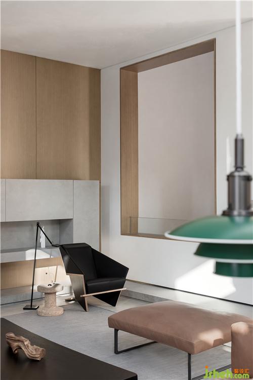在入户上方所出现的建筑结构梁,是被保留下来的建筑原结构,见证了改造之后的价值重生,也成为空间场域的记忆线索。杭州室内设计师挑空处的镜面盒子与结构梁形成对照,模糊了新旧关系下的时间秩序。
