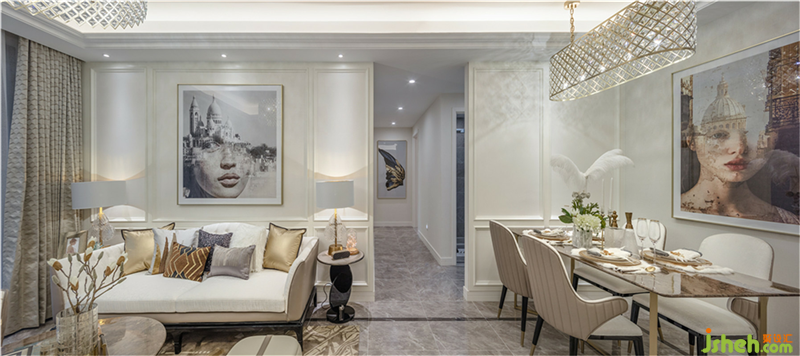 本案位于安徽省合肥市滨湖新区,距离滨湖金融商务中心、行政办公中心不足2公里,让我们想到的是纽约曼哈顿金融街的绝佳地理位置。我们提取建筑外立面厚重感、礼仪感、经典的柱式比例搭配及对称关系,延续到室内,打造合肥首个高品质大都会轻奢风格样板房。