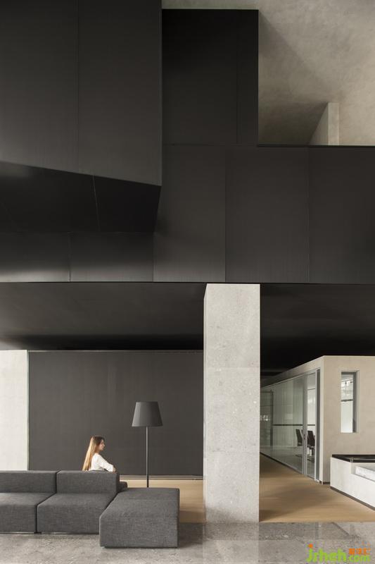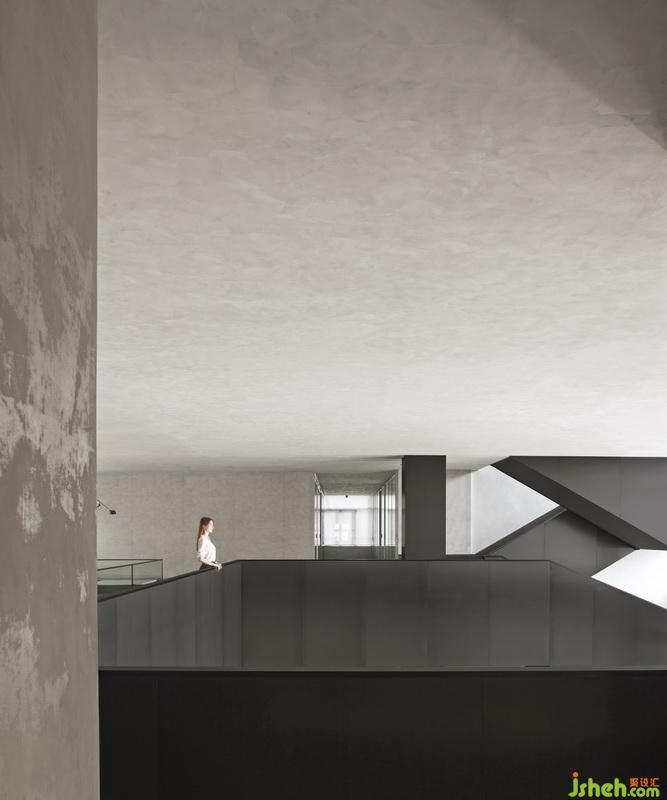空间的天花板并无任何一盏灯,取消昼日照明,而是利用地面光束的漫反射来实现照明。或许只有在夜幕降临时,才会被人讶异这设计,可以如此感受到一天的自然气息变化。