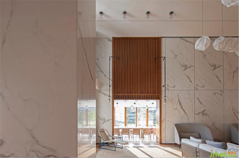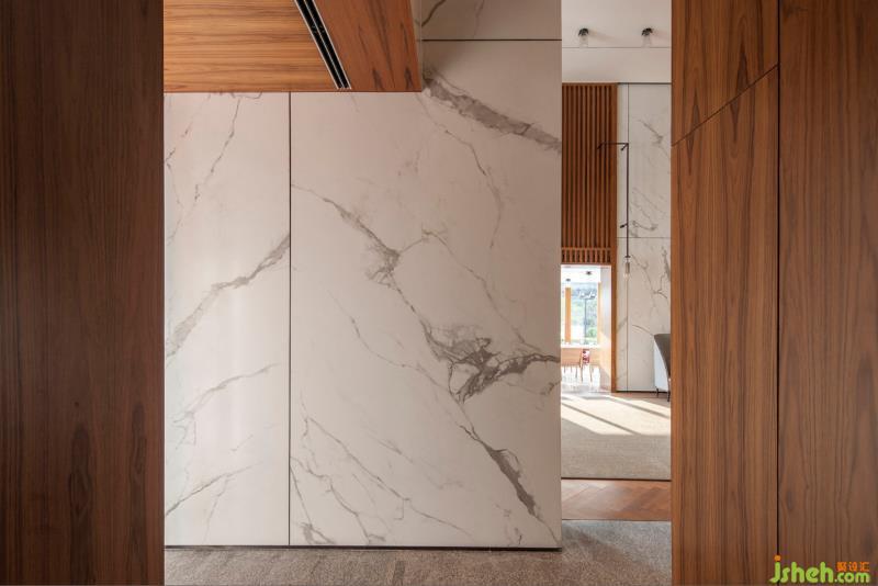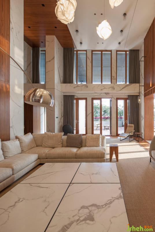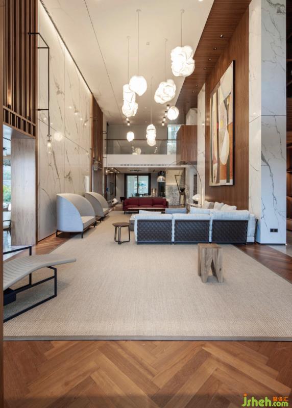 别墅以木质饰面和灰白大理石为主基调,将山海转化于室内。木代表如山的沉稳,缥缈纹路的大理石,如海波也似云。三亚别墅装修设计配以现代感家具和艺术品,整个空间弥漫着生活的质感而又不失轻盈。