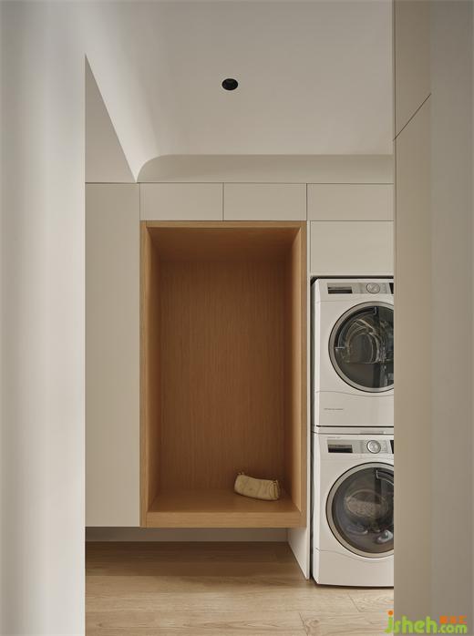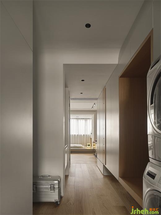 有了充足的过道空间之后,装修公司设计师把鞋柜和洗衣区安排在了这里。