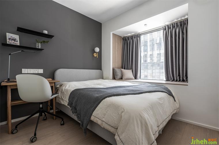 深色往往给人带来沉静,忙碌了一天都可以在这里释放掉所有的疲惫,家装设计窗台的木地板提供了远眺休息的小角落,一盏金色的壁灯将会是夜晚远航的人们最温暖的灯塔。