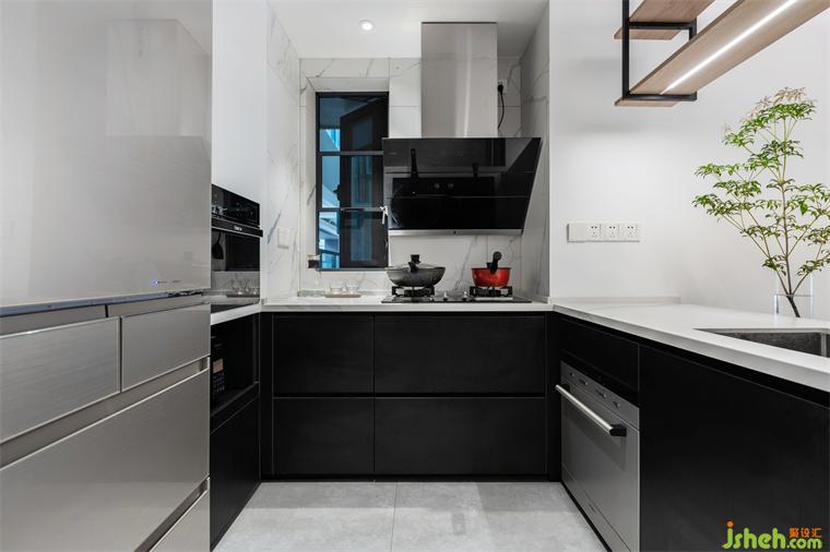厨房延续了黑与白的经典搭配,亮堂的空间氛围,舒适的操作动线,让厨艺得到最大的发挥。