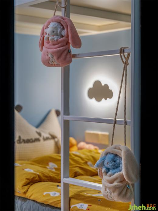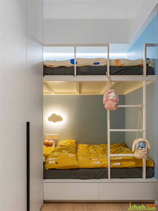 小朋友最爱的上下铺也在儿童房得到了实现,同时拥有了大容量的储物柜和宽敞的学习区,家装设计沉浸在自己小小的世界里,肆意玩耍,这里就是就是她们的"童话王国"。