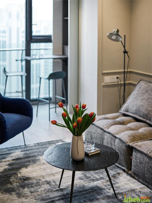 公共空间运用大面积的暖灰色进行铺陈,装修公司跳跃其中的蓝灰色增添了一份律动的情绪,一面可以卸下满身的疲惫,一面可以让思绪飞扬。