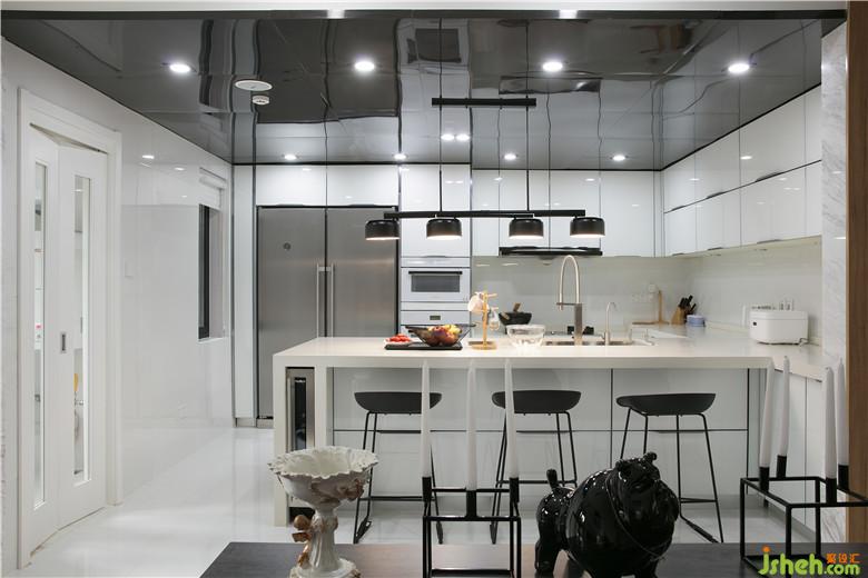 开放式的西式厨房,业主可以在此随意做些小食,倒上一杯小酒,享受浪漫、惬意的二人时光。