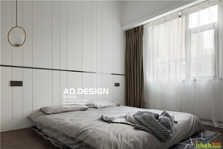 主卧室内设计师设计成一个套房,衣帽间单独分开。小仙女对服饰有着很高的要求,采用玻璃柜门,内设灯带方便识别衣服。背景墙设计成隐形门,打开就是主卫,如生活里的小故事,推开一扇门,遇见一个惊喜。