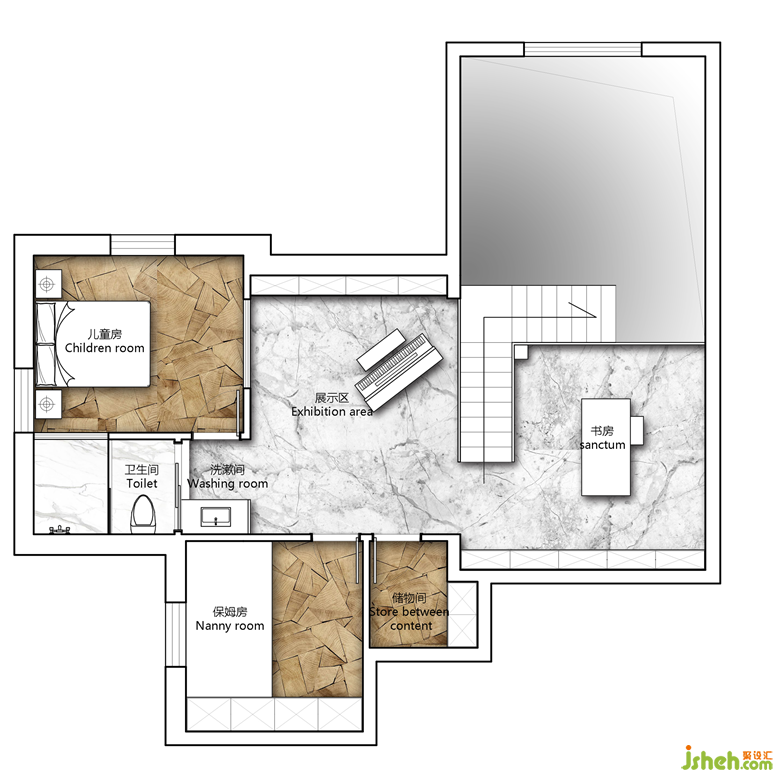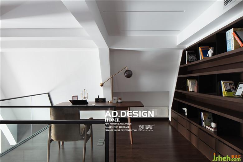 二层目前只有书房,采用玻璃护栏,李酷酷在楼上玩游戏,小仙女在楼下看电视,互通的空间,沟通更方便。