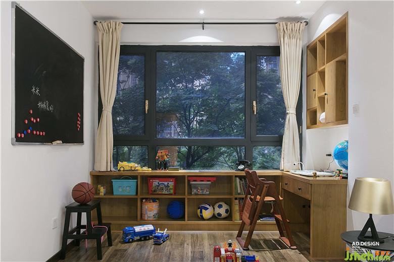 因为小孩相对会长期使用这两个空间。所以比起高冷的白色烤漆柜门更多的运用木色柜门来营造气氛