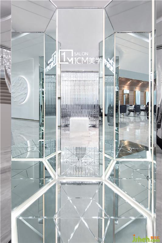 大厅及开放理发区,用不同白色和透明的材质加上一些反光材质的运用。希望营造造出一个简洁干净的空间效果。