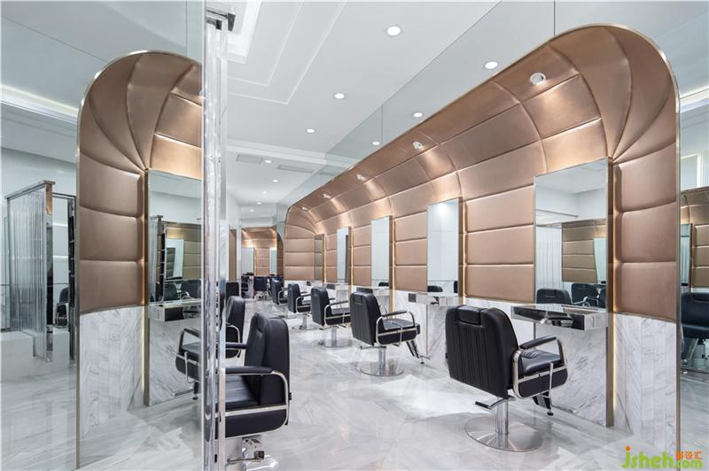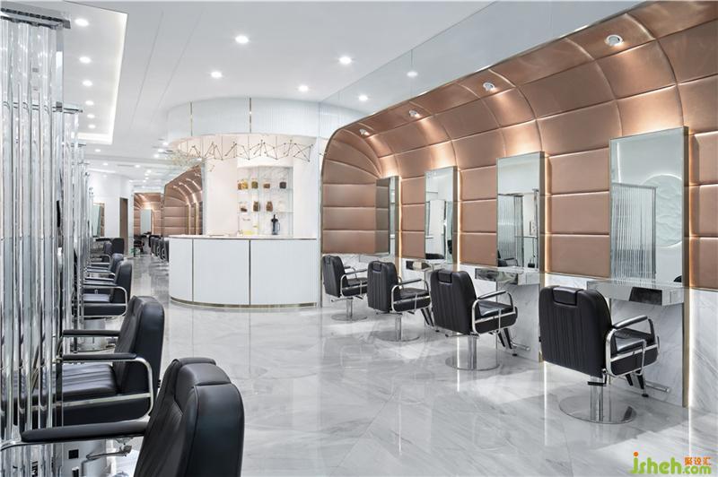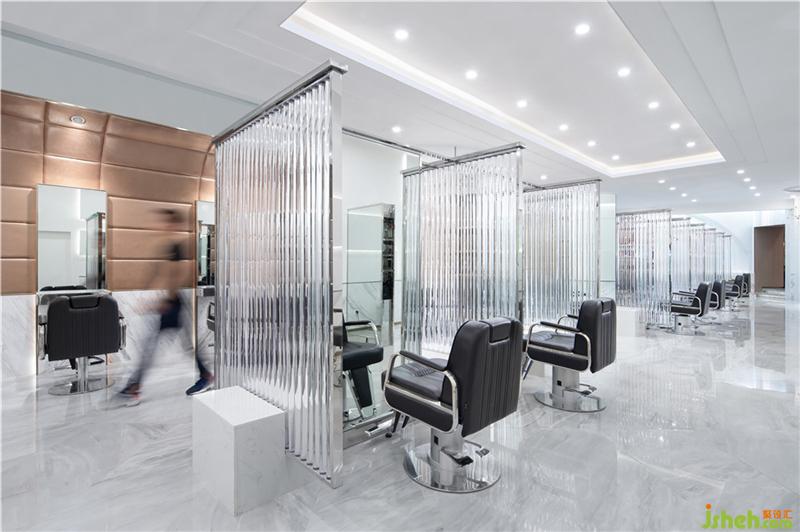 进去开放剪发区延续白色基调的同时,加上反光的镜面,镜面不锈钢和透明玻璃圆柱。白色的空间有了闪耀,活波,未来的风格。像是一次从古代穿越未来的旅途。装修公司