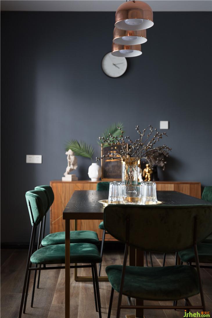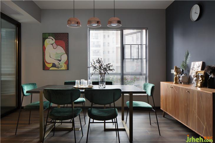餐厅的餐边柜墙面的烟灰蓝与客厅的沙发背景墙遥相呼应,长方形的八人餐桌搭配墨绿色餐椅满足日常以及有客人到来的时的需求,而从客厅面对餐厅的墙上挂着一幅毕加索的《梦》,则是整个餐厅的点睛之笔,这幅画不仅仅是作为提升整个空间的艺术氛围而使用。毕加索用最简单的绘画表现出了一个在梦境和现实中的少女,心形的脸,是热恋中爱的写照。当年,47岁的毕加索与长着一头金发的17岁少女初次相遇,从此,这位少女便一直成为毕加索绘画和雕刻的模特。又过17年,64岁的毕加索给她的生日贺信中说:“对我来说,今天是你17岁生日,虽然你已度过了两倍的岁月。在这个世界上,与你相遇才是我生命的开始。”同样的,徐小妞与陆先生的初次相遇,也是作为陆先生摄影的模特,也许毕加索的这段话,正是陆先生要对徐小妞想要说的最温暖的情话。