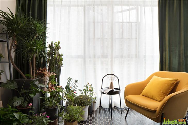 主卧全房的乳胶漆颜色都采用暗沉暧昧的墨绿色,点缀些许杏红色在窗帘布料以及装饰画上,搭配上金色的铁艺双人床,让整个空间的软装配饰更加突出。而杏红色的窗帘背后则是通往衣帽间以及卫生间的过道。
