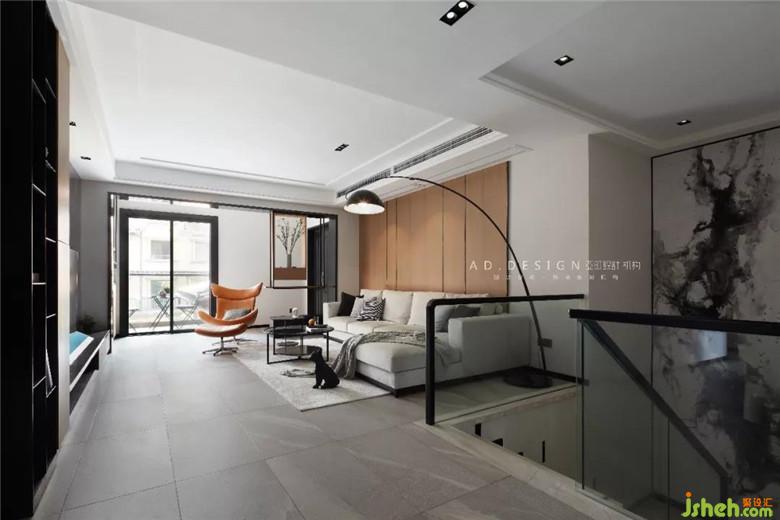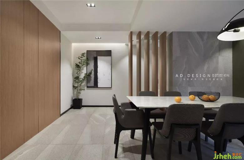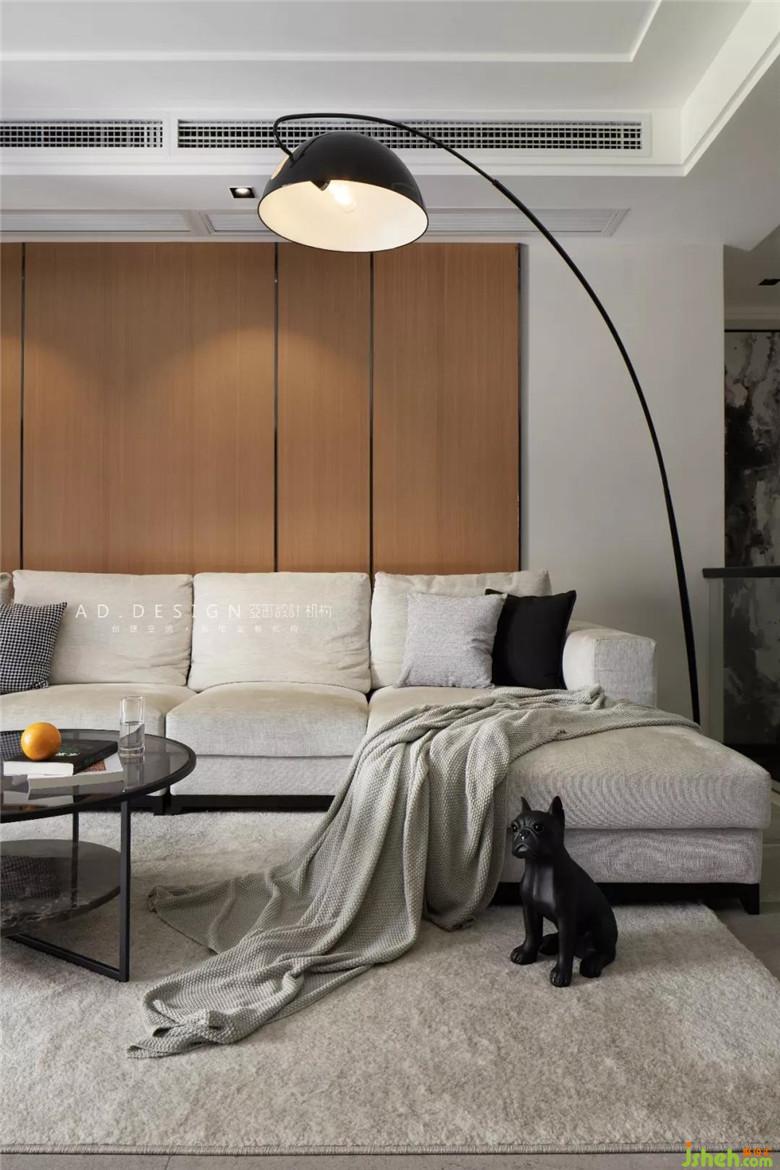 ▲沙发背景墙设计结合木饰面与不锈钢组合,不锈钢与加长的空调出风口拉伸空间比例,化解了沙发面宽过窄的弱点,钓鱼灯既能满足区域照明需求,也使得原有棱角分明的方正空间增添灵动感及趣味性。