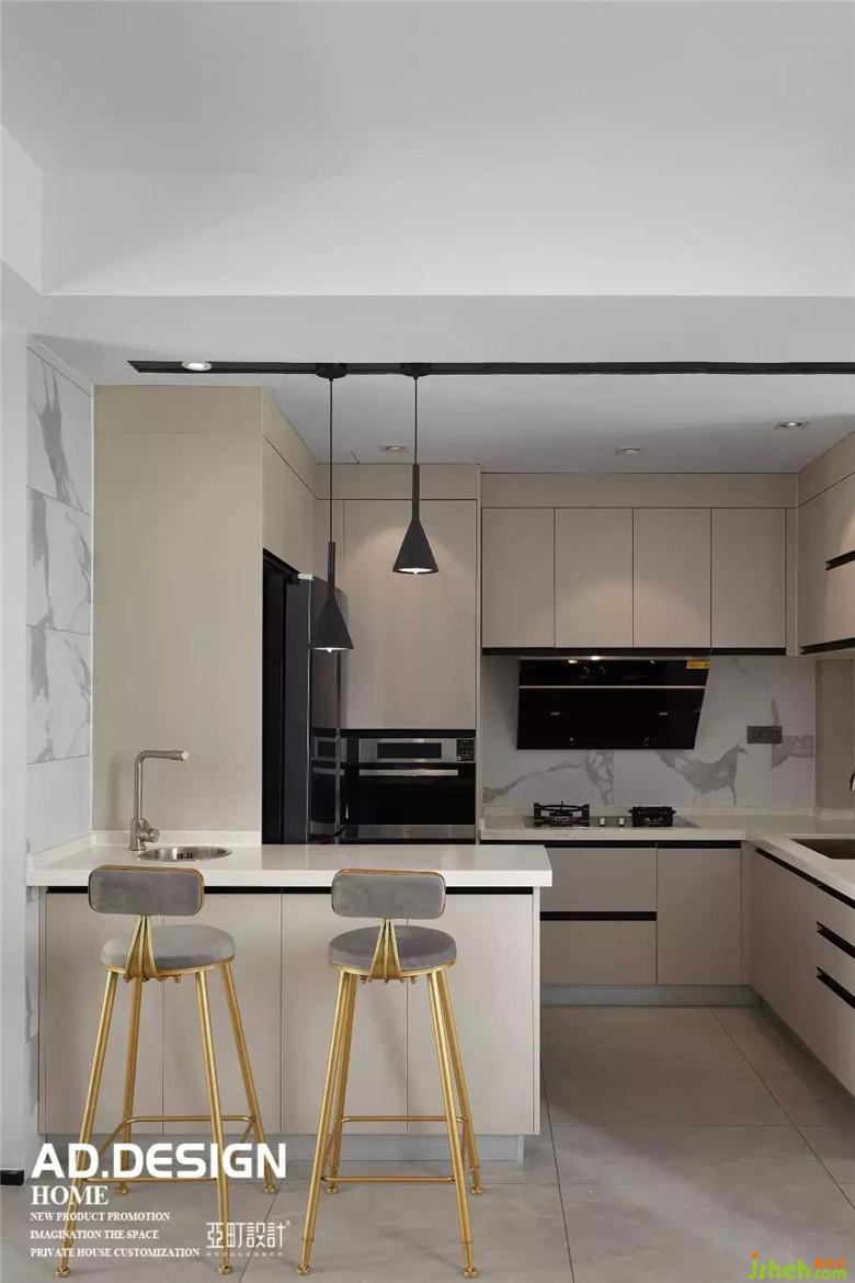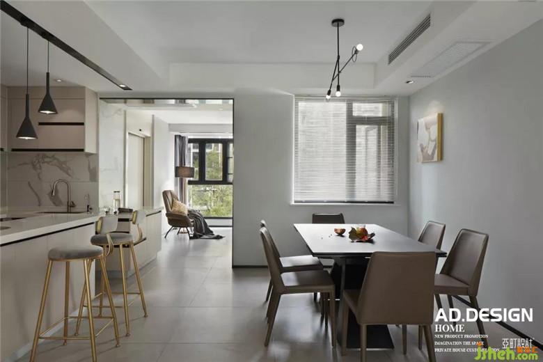设计上,将厨房、吧台、餐厅,