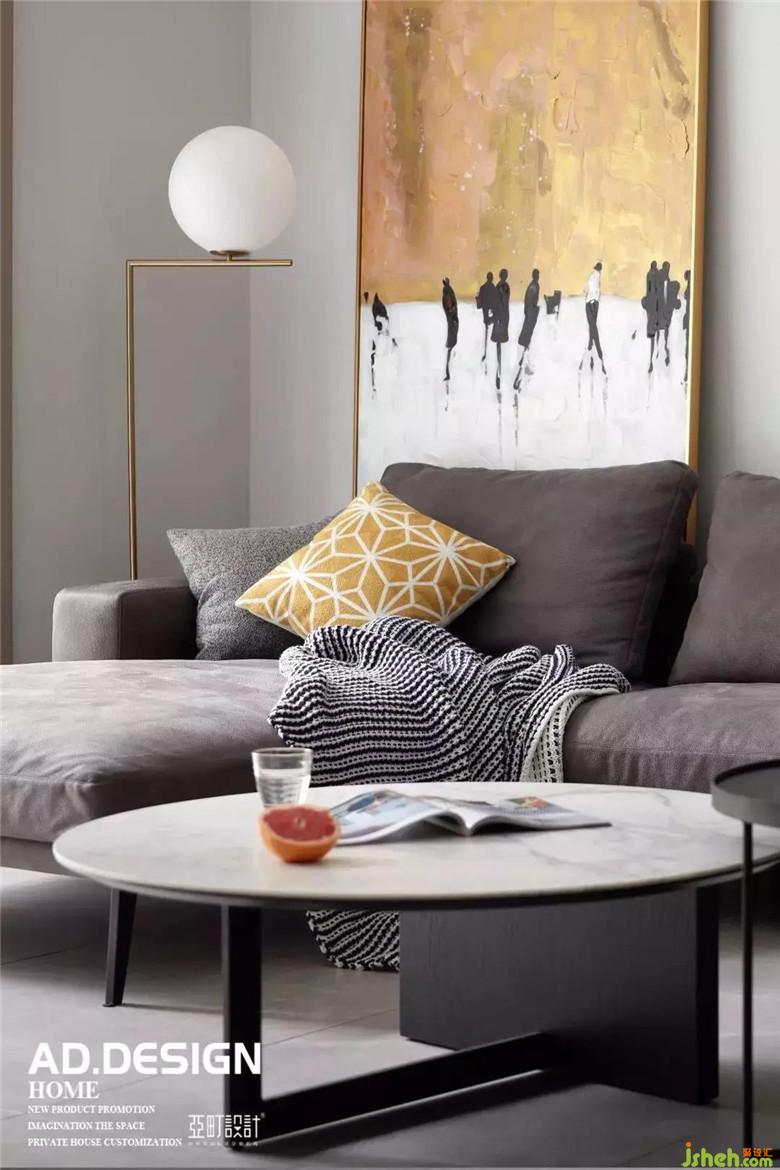 黑白灰的经典组合为客厅主色调,
