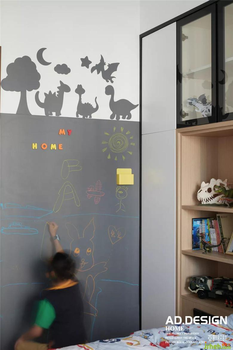 同色系的装饰画搭配整体空间的线条感,KAWS玩偶是小精灵给男孩的礼物,也成为了整个空间的点缀。