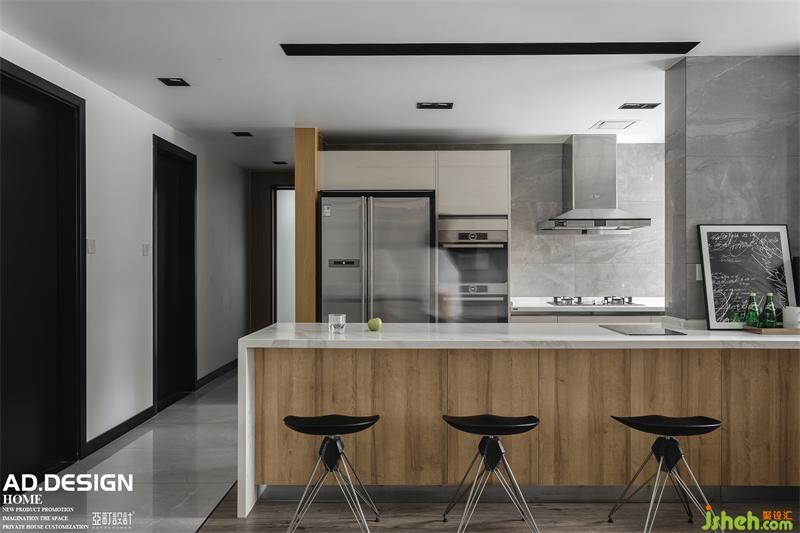 原木色与黑白灰为基调,调和出现代简约的舒适气息