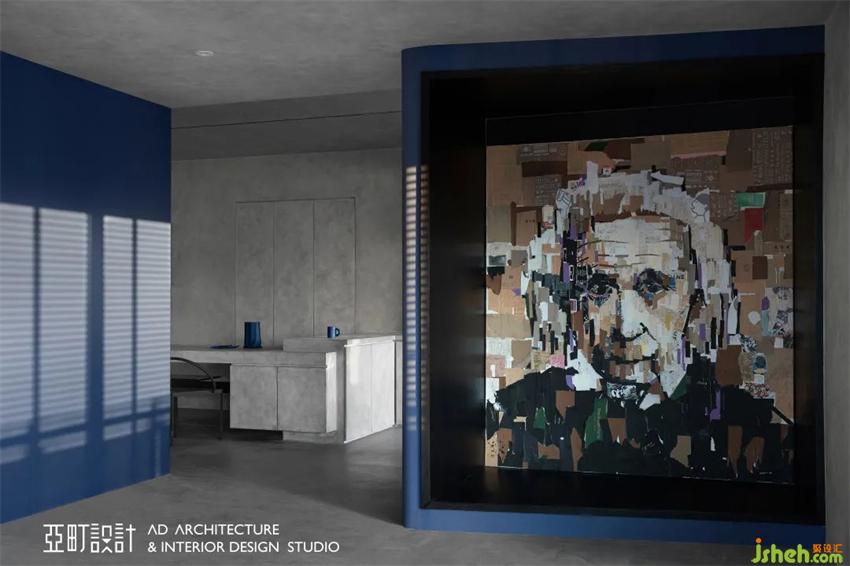 女主人是个知名节目的编导,有一期是一个画家拍卖画,她就把这个画带回了家。“给它安个家吧~”设计师把它安置在了落地床旁,形成了一个休闲区。这幅艺术大画以新颖的拼接艺术做出极具个人风格的视觉效果。