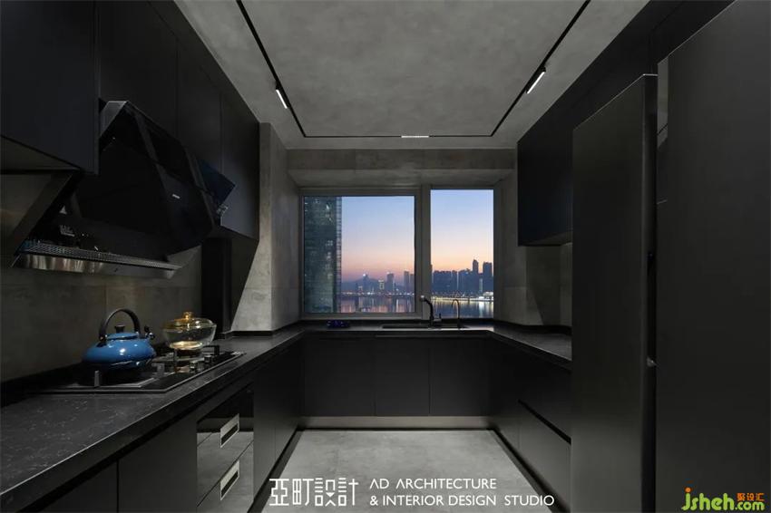 长沙家居设计契合U型布局的半围合式动线布局,从使用、生活、人的角度出发,设计更便捷的厨房空间。