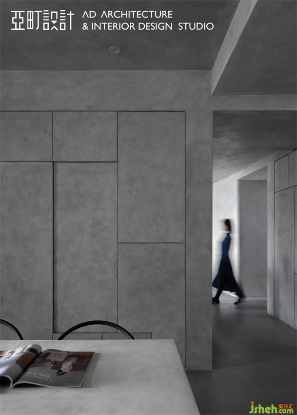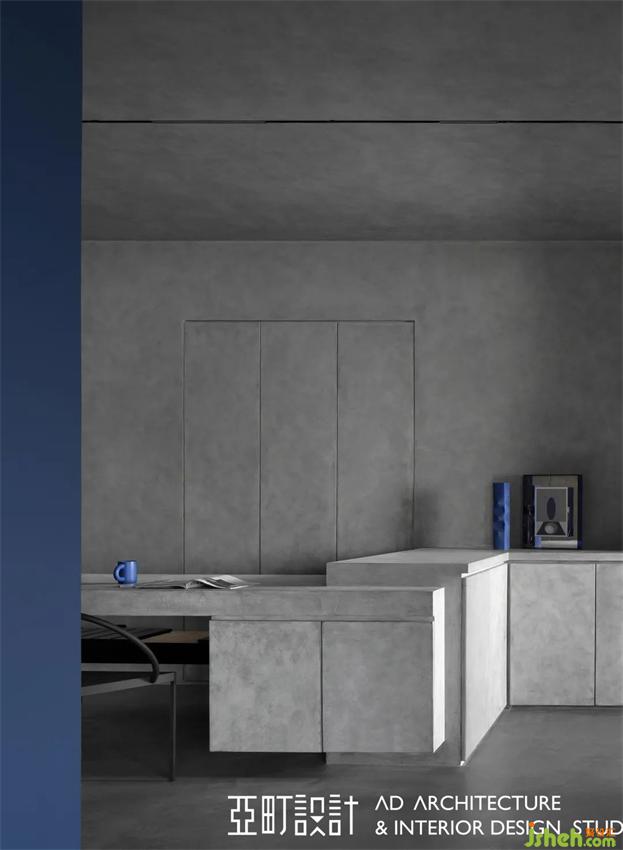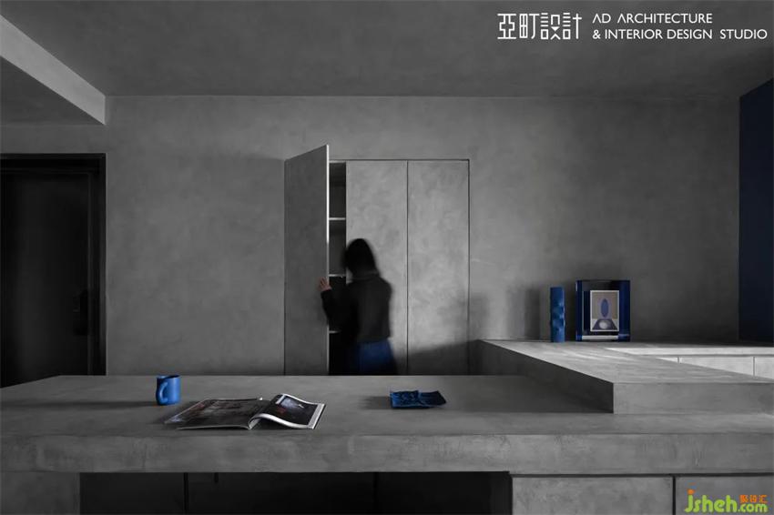 延续灰色的调性,空间显得并不繁杂,四周都做了到顶的隐形柜,满足日常用品的收纳。
