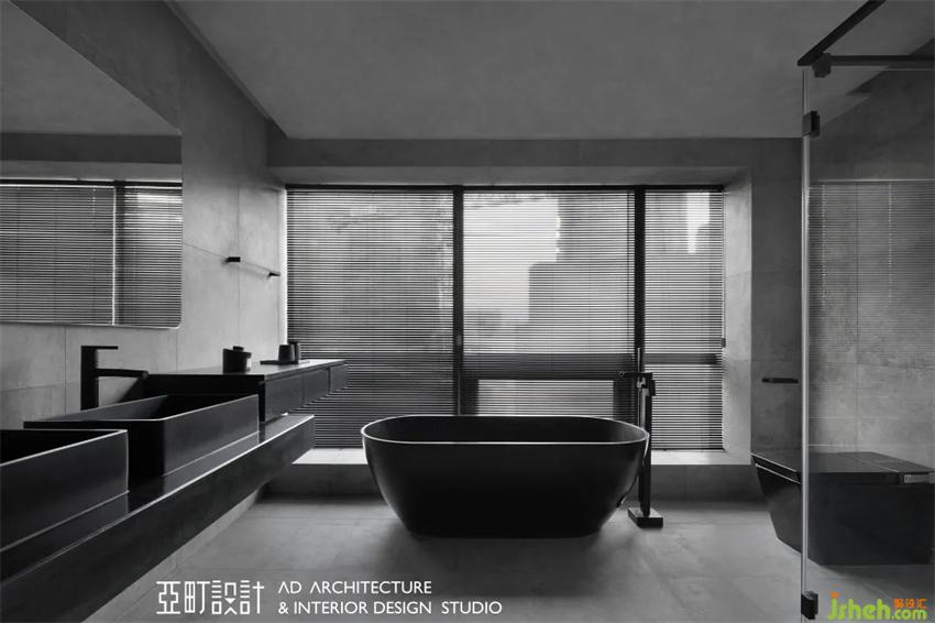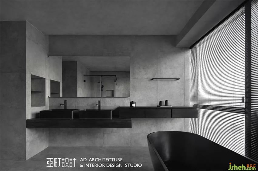 主卫采用双盆台面,夫妻二人早上互不干扰,玻璃门将淋浴房一分为二,划分出干湿两区,兼具两人的需求。