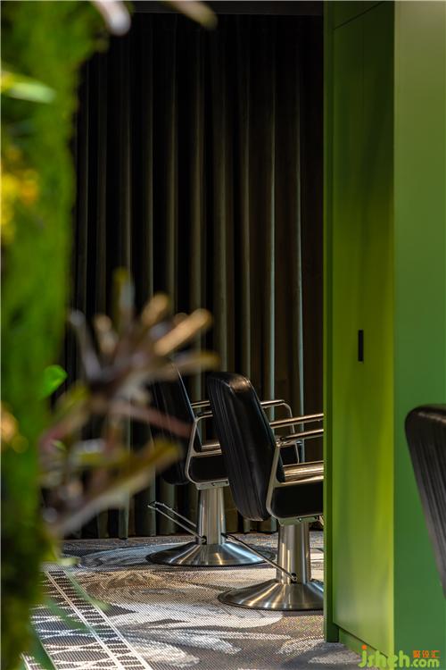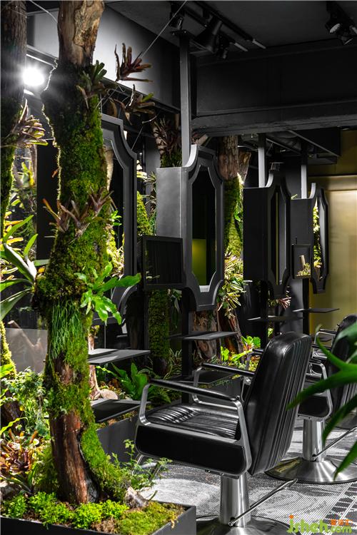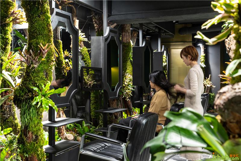 鸟鸣、流水、木头与植物散发出自然香气,一个处处充满绿意及生命力的空间,打破以往对发廊的刻板印象,也重新诠释了不同的空间概念。