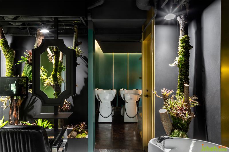 The delicate atmosphere gradually infects the mood, the tangible and intangible nature and the change of light and shadow set off a pleasant and beautiful interest in the space. This urban oasis is expected to bring people different sensory experiences and visual enjoyment. One can embrace the natural appearance in the bustling city and feel the collision of natural elements in the space. Deconstruct the existing natural lines of tree trunks and combine them with shade-tolerant plants then reorganize them in the space recede all the complexity and eventually reach a balance between nature and design.美发店设计