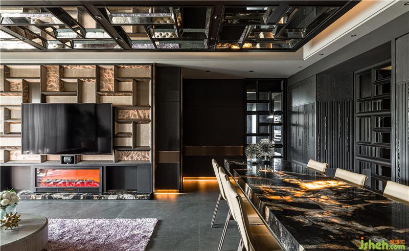 在视觉中,透过不同镜面的运用、光影的深浅交叠与不同的媒材肌理等,展现出空间大器的层次与内敛的深度,更存在着一种动感,营造出开阔、独特的场域氛围。而空间上许多别具巧思的细节,促成生活与人之间的互动连结,也构筑出在都市繁华中一特别的人文寓所。家居装修设计