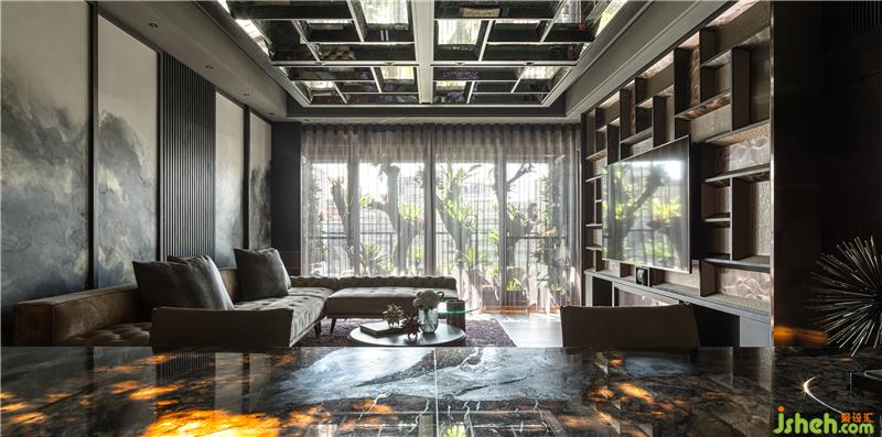 主要材料:木皮、镀钛金属、皮革、仿古镜、大理石、抽象画、枯木、自然植栽