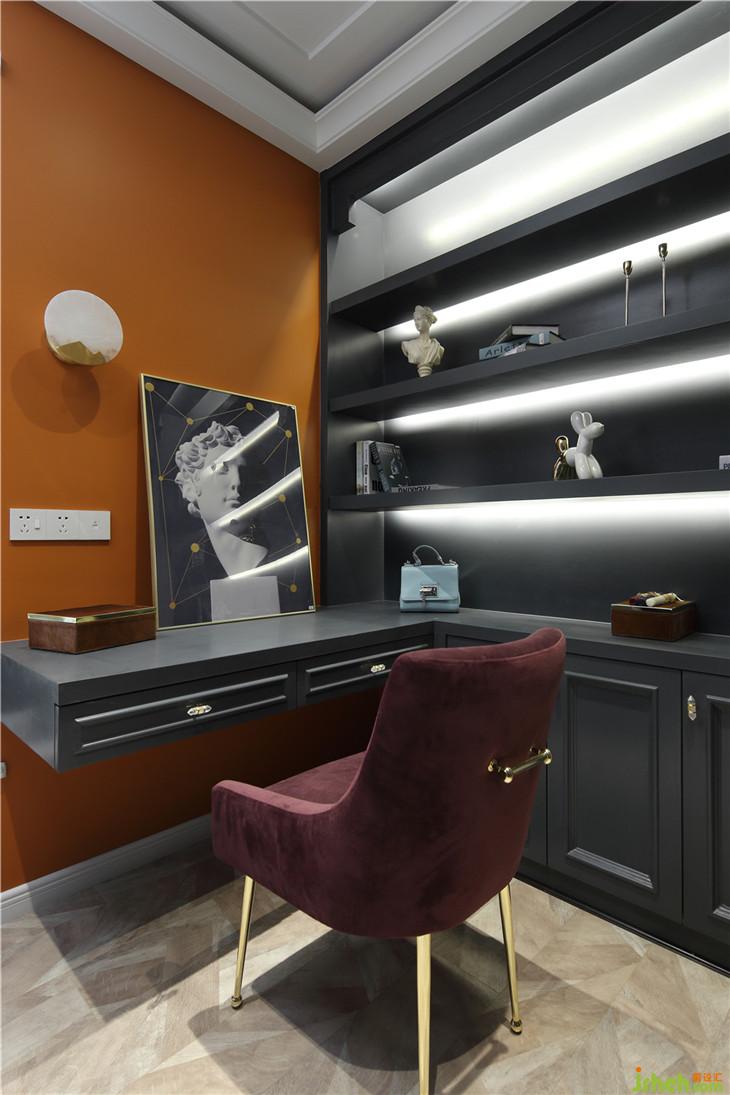 爱情总是不期而遇,阿米地奥.莫迪里阿尼看着眼前的珍妮说到。给我当模特我会让你名垂青史。于是他们相爱了。珍妮狂热的爱着阿米地奥、因为宗教不同,她不惜与家庭决裂也要与他在一下。他们的爱情像极了本案在雾霾蓝包裹下的灿烂的橙色,阿米地奥为珍妮创造了二十多幅肖像每一幅都是给珍妮画布上的情书。雾霾蓝平和稳定,橙色的温暖与热情犹如她两的性格互补又和谐。他俩的爱情就犹如本案的两名业主一样坚贞不渝。餐厅两幅阿米地奥的名作,时刻致敬这位毕加索最大的劲敌,他就好比餐厅贝壳灯一样璀璨夺目。主卧室大面积的橙色就像珍妮炽热而真诚的爱温暖着落魄时候的阿米地奥。