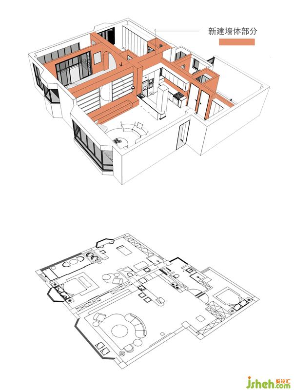 基本拆除原始所有墙体做全新重建