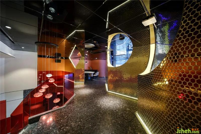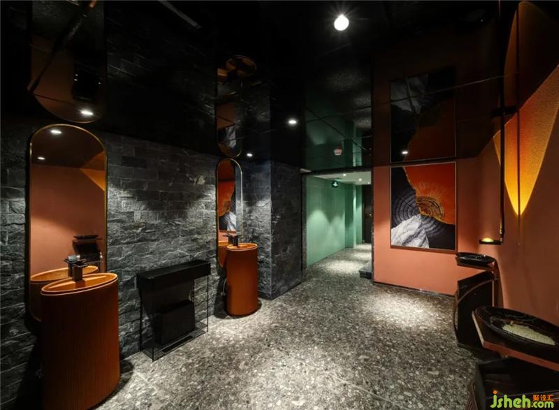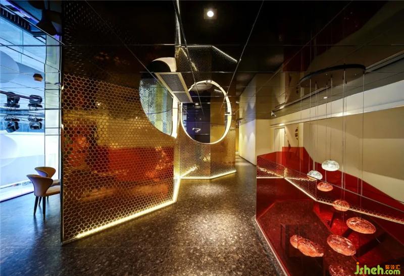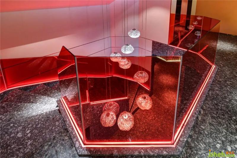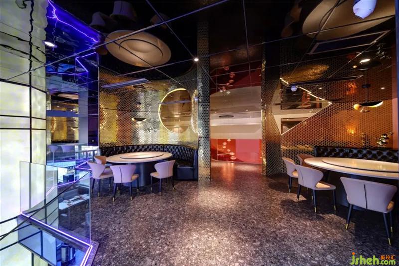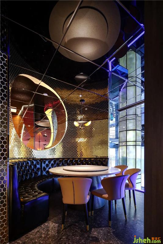 在空间中,有许多有意思的打卡区:进门水吧台的星空顶、玻璃扶手的旋转楼梯、二楼包间区等等;自带打卡点的门店,会带来许多来自朋友圈的免费流量烧烤装修设计。