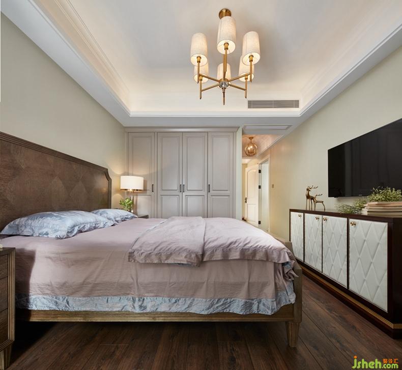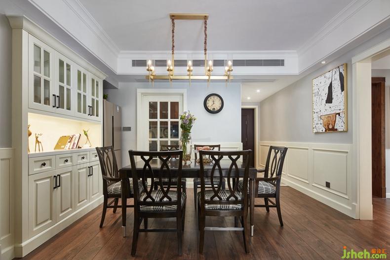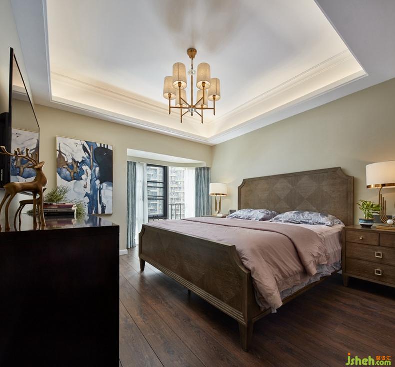 客厅采用嵌入式石膏吊顶,搭配精致的吊灯,营造出一种温馨、浪漫的氛围。舒适的皮质沙发,风格鲜明的装饰画,都让美式风格得到进一步的彰显。