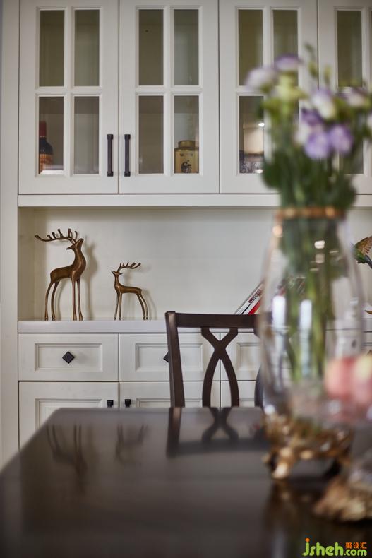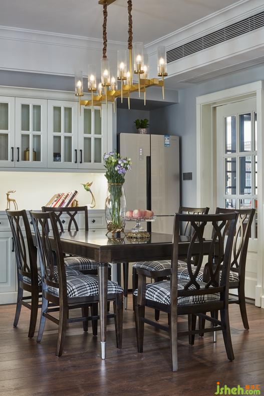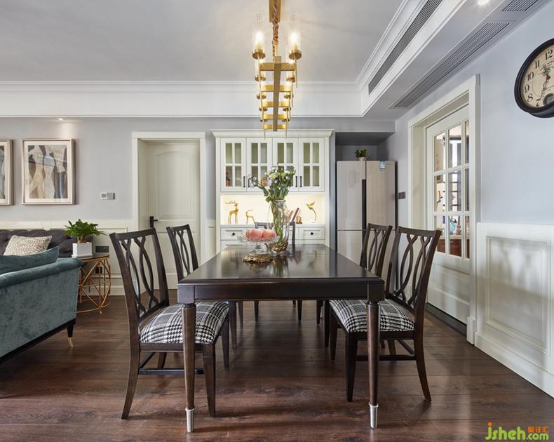 餐厅与客厅一体化的设计使得整个空间更为明亮。作为用餐区的餐厅,在保证基本用餐需求之时,还能满足主人的精神需求,金属装饰物和挂画起到了点缀的作用。