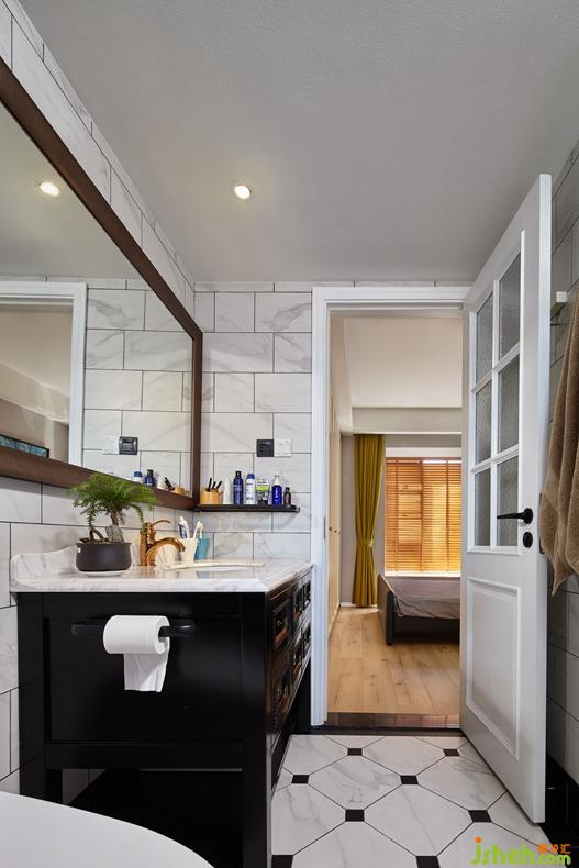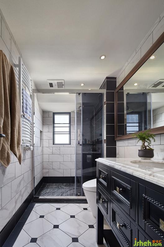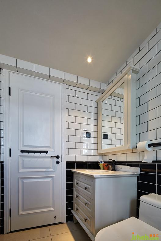 卫生间:看腻了平常的砖,来一个"黑白"世界。