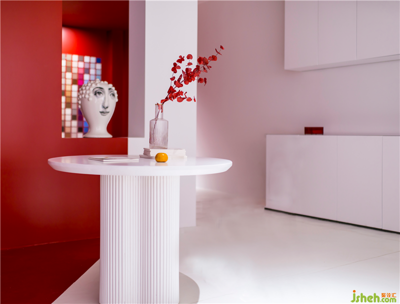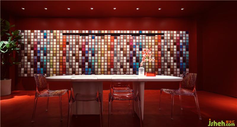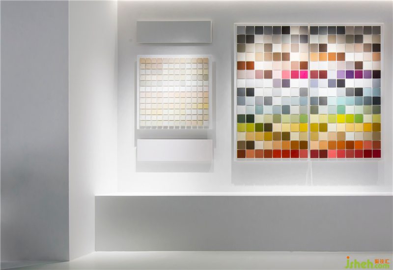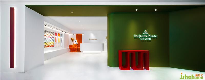 结合商业展示和艺术的体现,再仅有的空间不止展示出大量的色系产品~色彩的多样性,关联性、实用性~在墙体也明确了本杰明摩尔涂料的独特肌理温州展厅设计、更是展示出涂料的可塑造型~它可以是一个艺术装置产品,也可以是一幅生动的画~用最简单的色块,做最巧妙的画龙点睛之法成整个空间的点、线、面,让空间变得生动,立体,原本没有任何联系的两种材料,紧密链接在一起,色彩比更多的装饰材料更具有视觉冲击力以及艺术感
