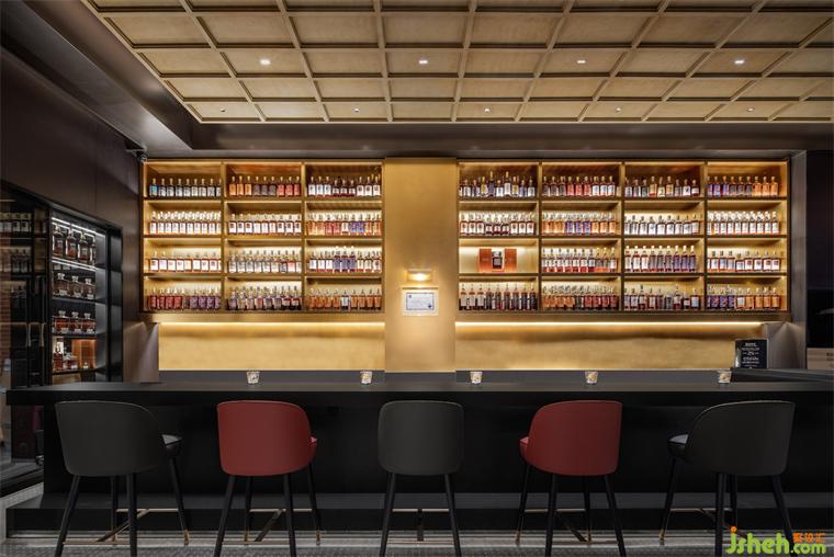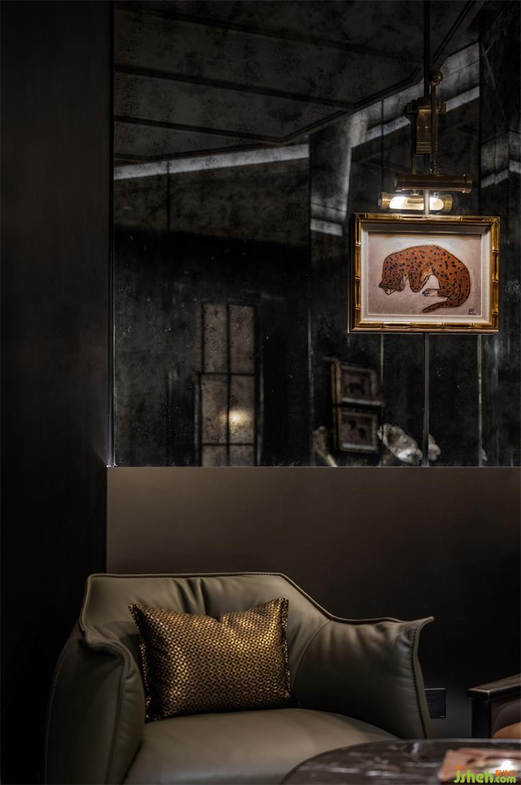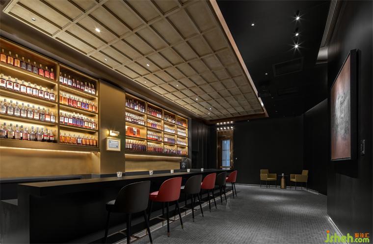 黑金隔墙之内访客被柔和温暖的灯光所包围,构建放松的空间体验,餐厅设计不规则的镜面折射带来未来与迷幻之感。