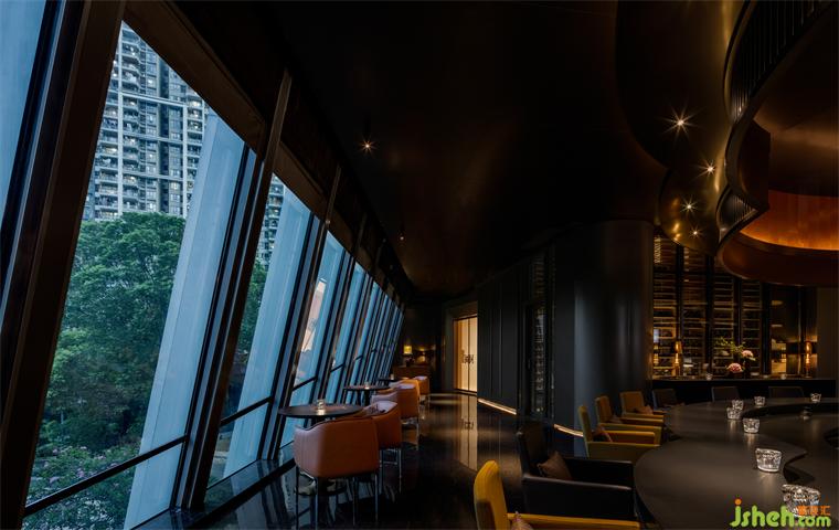 餐厅设计利用地面灯光与半透的金属隔断变换在光与影之间,增加了空间虚与实的层叠感,层层跌进制造了不确定感的空间情绪,是怀旧复古、或是都会品奢,我们将感受留给访客。