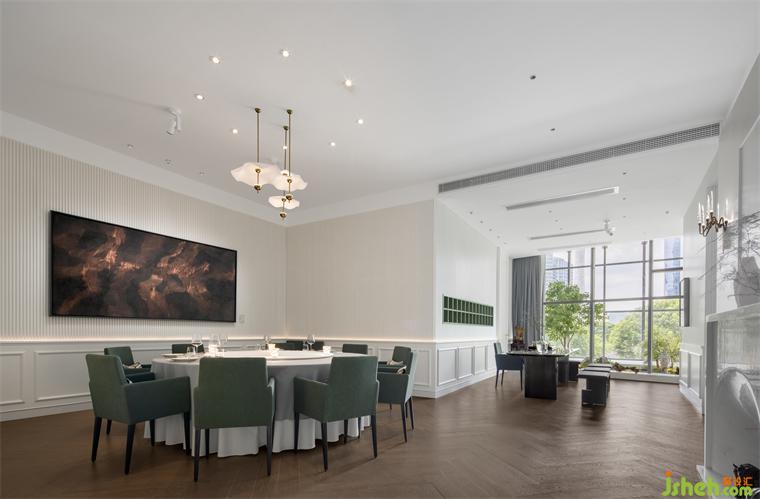 后场包厢满足了会客、宴请等功能,让欢聚更具私密性与用餐仪式,餐厅设计包厢以大面玻璃将室外自然引入,将用餐者从纷扰隔离出来,感受此刻静谧慢时光。