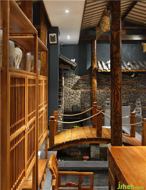 中国传统的室内设计融合着庄重和优雅的双重品质,木结构形式在中式建筑中显的成熟稳重。古语云:“宇,屋檐也;宙,栋梁也。”人字屋顶在中式建筑中多有体现,木制家具的古朴和木雕门板精美相得益彰。餐厅设计