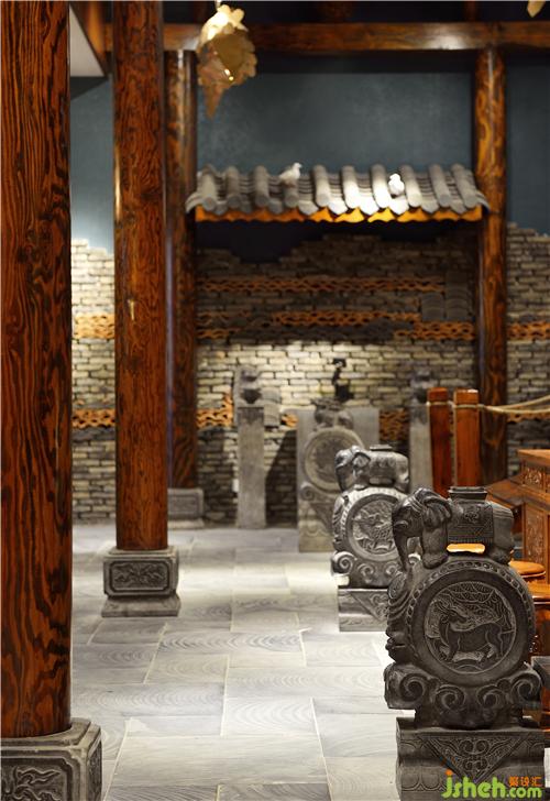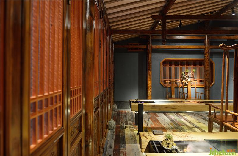 本案为纯中式的餐饮空间设计,在设计之初便从布局考虑将这古朴之意注入在每一寸不经意中,或顶上,或墙面,或摆件;